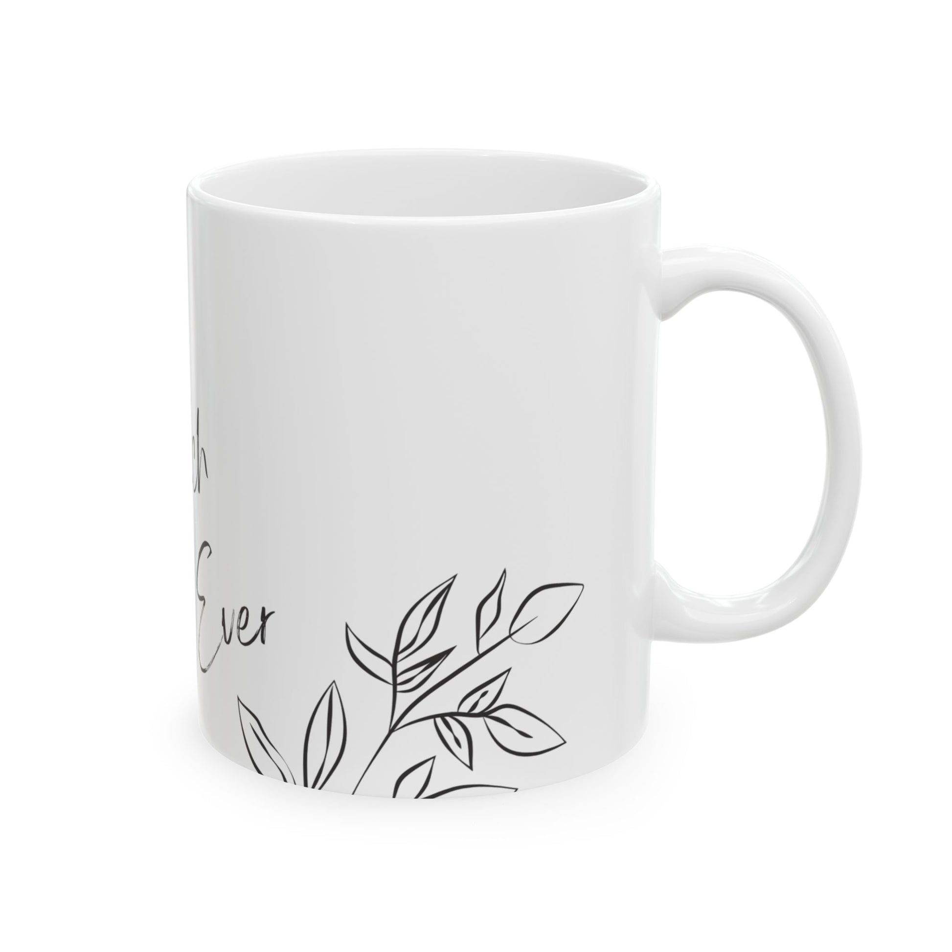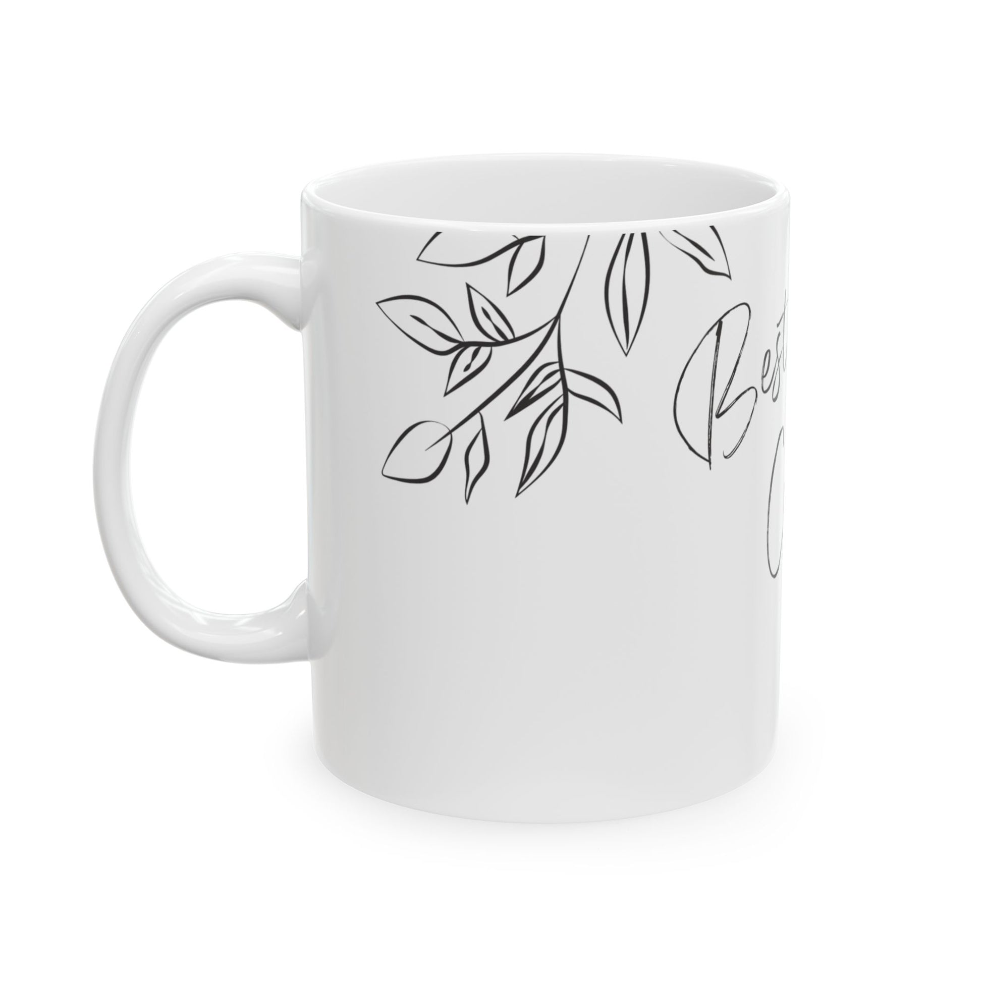 Enjoy your favorite hot drinks in this high-quality ceramic coffee mug. Made from durable white ceramic, this mug features a comfortable C-handle and a glossy finish. It’s microwave and dishwasher safe, lead- and BPA-free, and available in 11oz-perfect for coffee, tea, or hot chocolate.